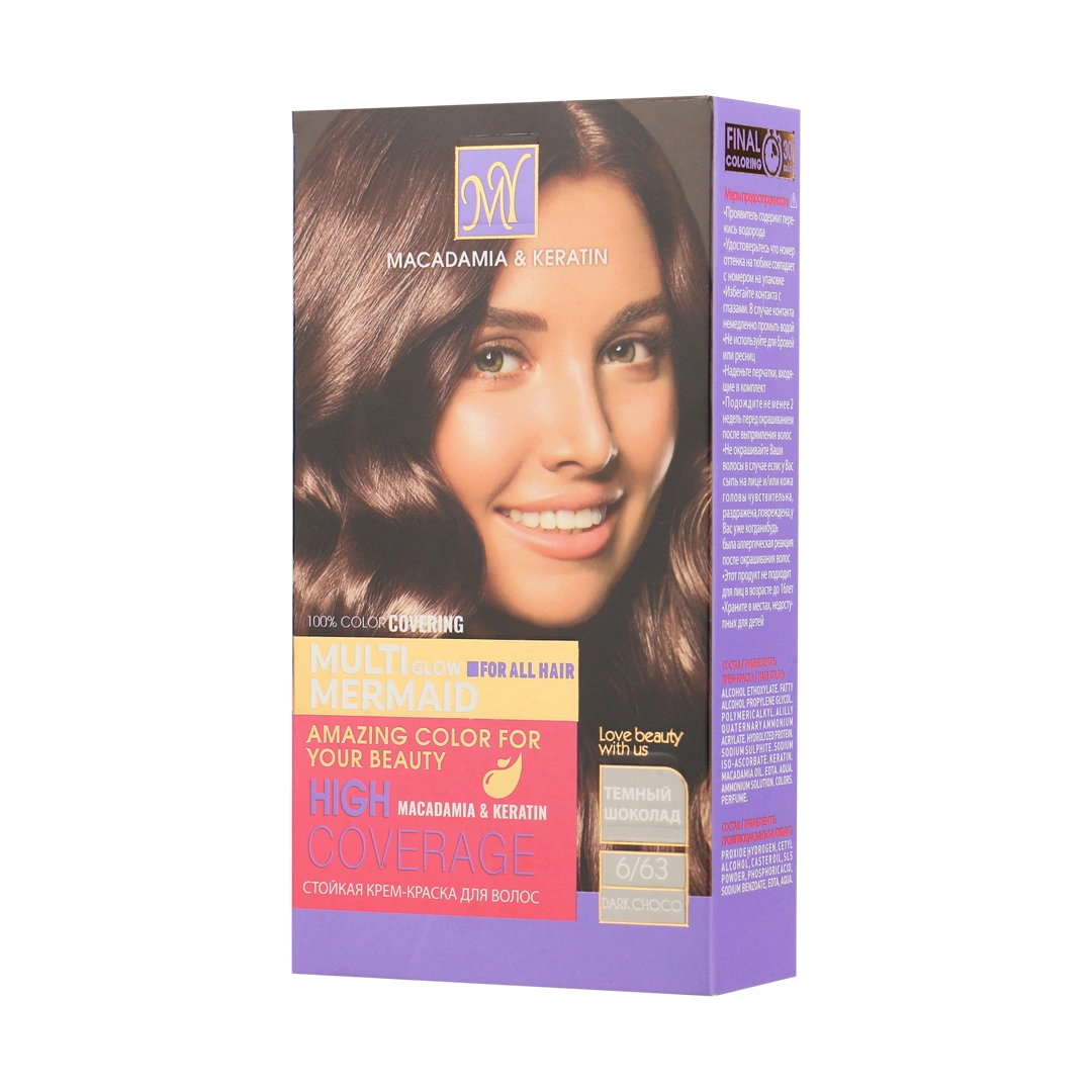 کیت رنگ مو مای حاوی کراتین هیدرولیز شده و روغن ماکادمیا است که به تقویت و محافظت از موها کمک میکند. این روغن منبع غنی ویتامین A است. وجود اسیدهای چرب در آن منجر به مرطوب شدن مو و جلوگیری از ریزش میشود.